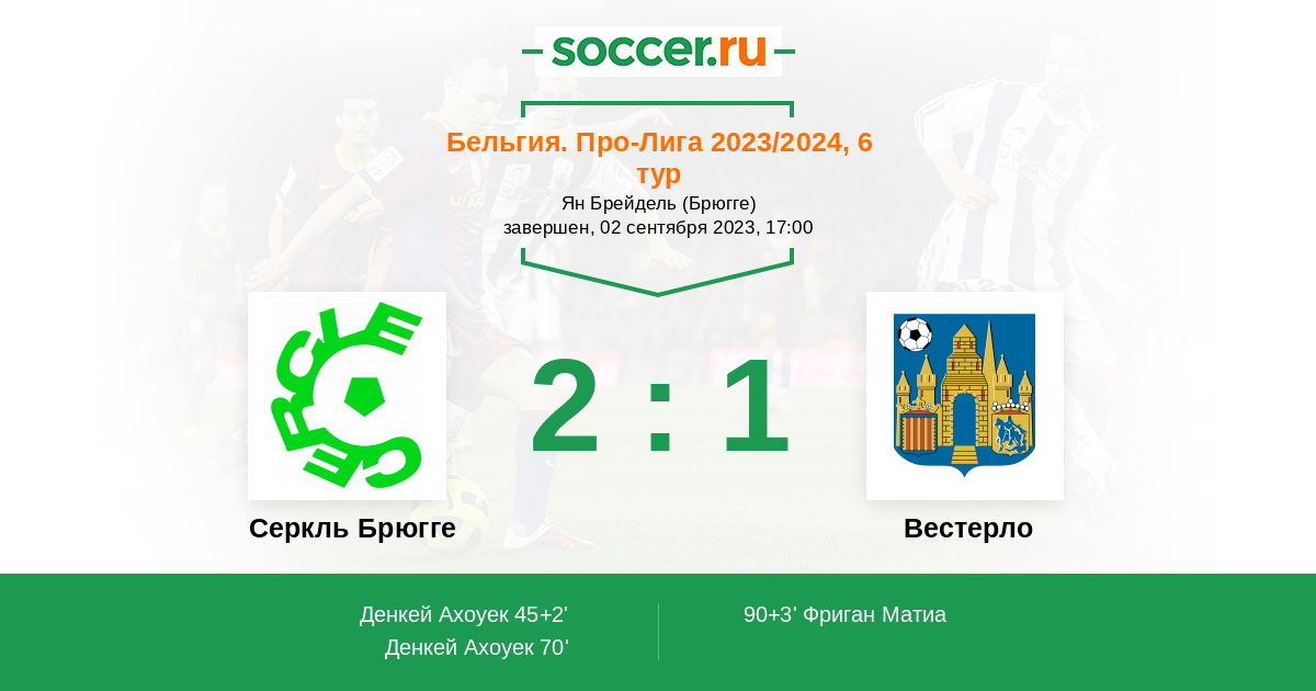 Протокол матча Серкль Брюгге против Вестерло