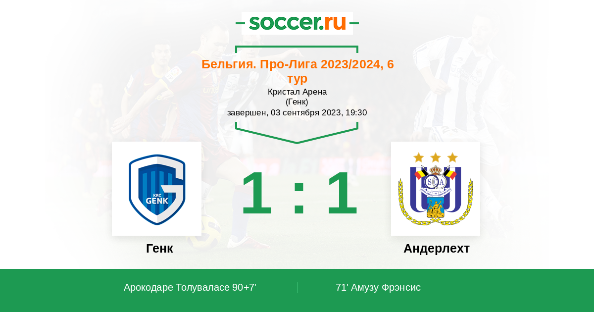 Протокол матча Генк против Андерлехт