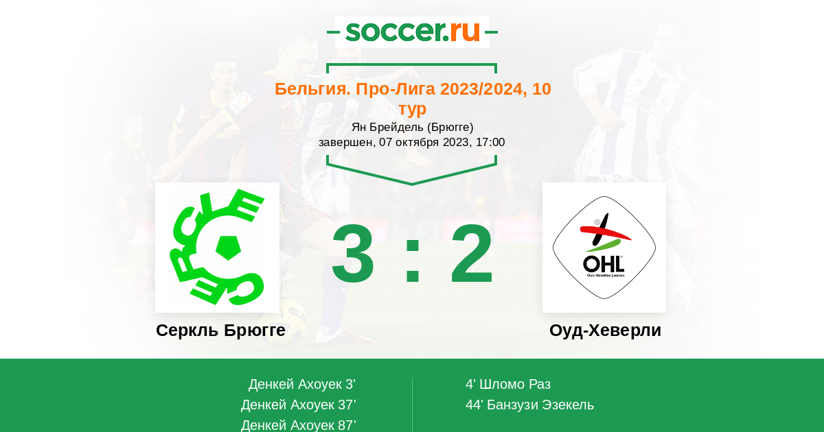 Протокол матча Серкль Брюгге против Оуд-Хеверли