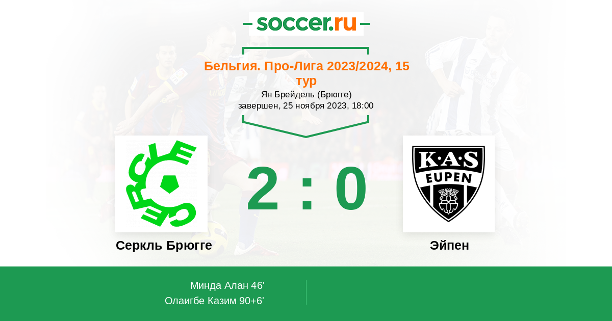 Протокол матча Серкль Брюгге против Эйпен