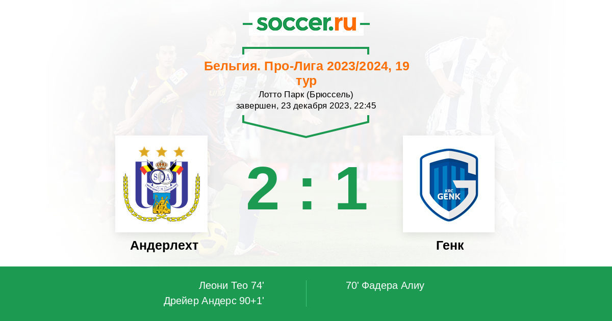 Протокол матча Андерлехт против Генк