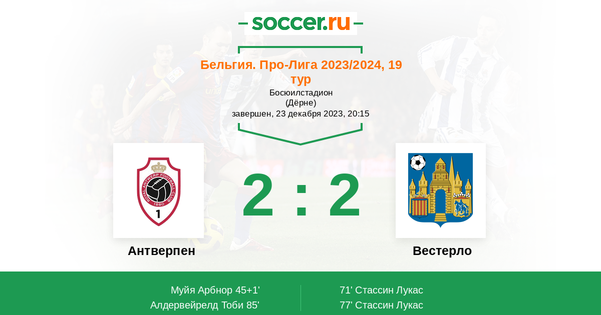 Протокол матча Антверпен против Вестерло