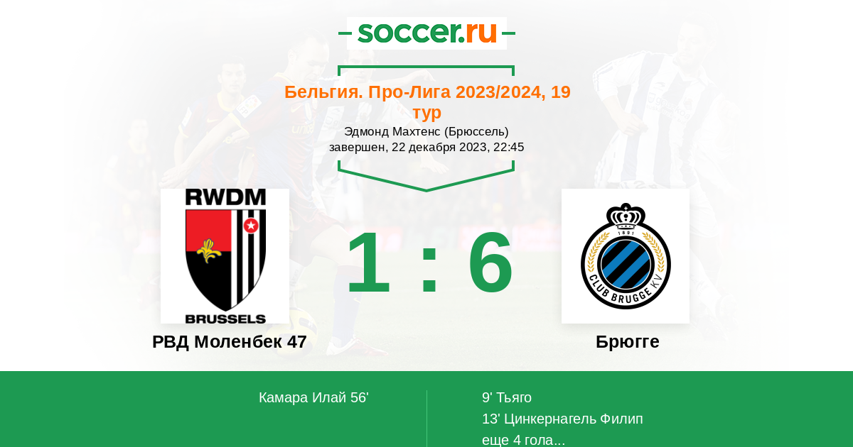 Протокол матча РВД Моленбек 47 против Брюгге