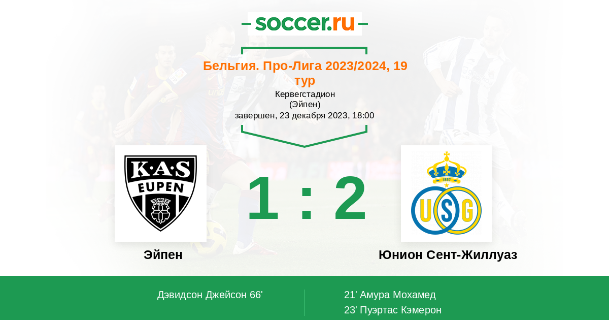 Протокол матча Эйпен против Юнион Сент-Жиллуаз