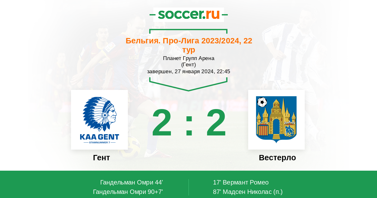 В матче бельгийской Про-Лиги между командами Гент и Вестерло смею предположить победу хозяев, потому как на их стороне преимущество своего поля, плюс гораздо результативнее в атаке и надёжнее оборона .