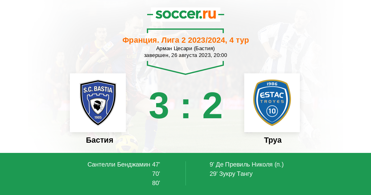 Протокол матча Бастия против Труа