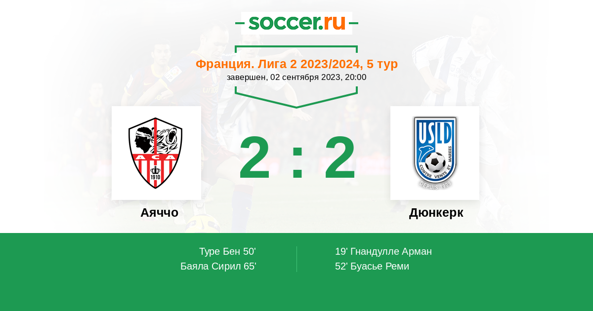 Протокол матча Аяччо против Дюнкерк