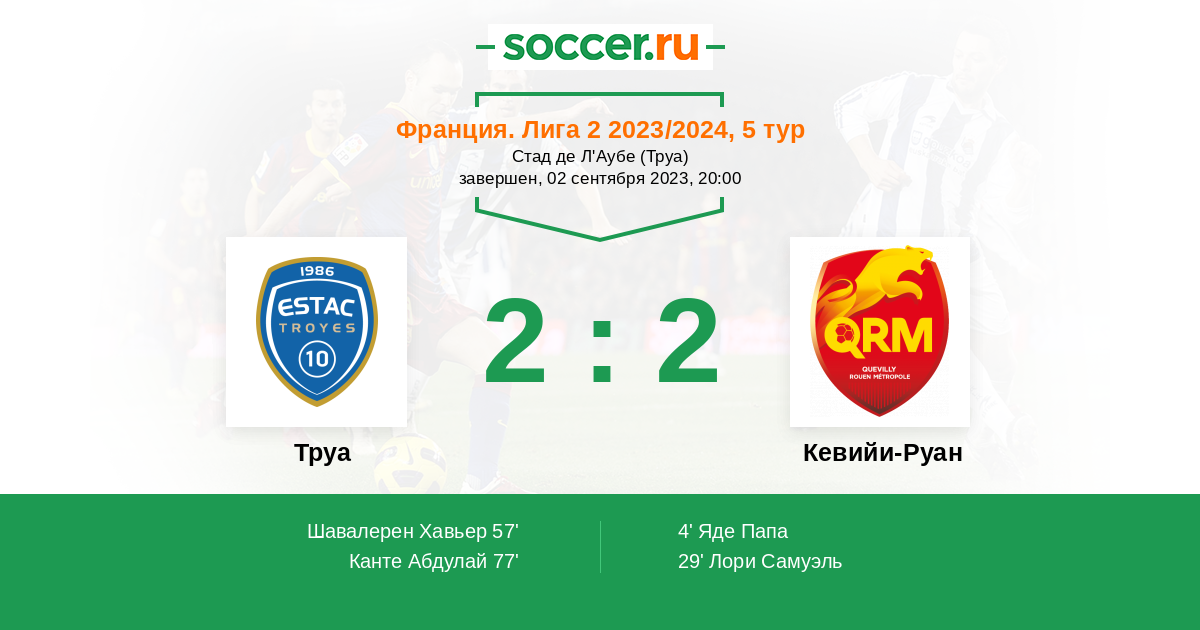 Протокол матча Труа против Кевийи-Руан