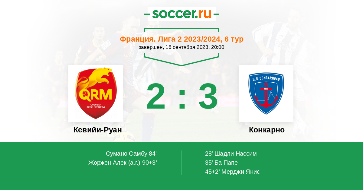 Протокол матча Кевийи-Руан против Конкарно