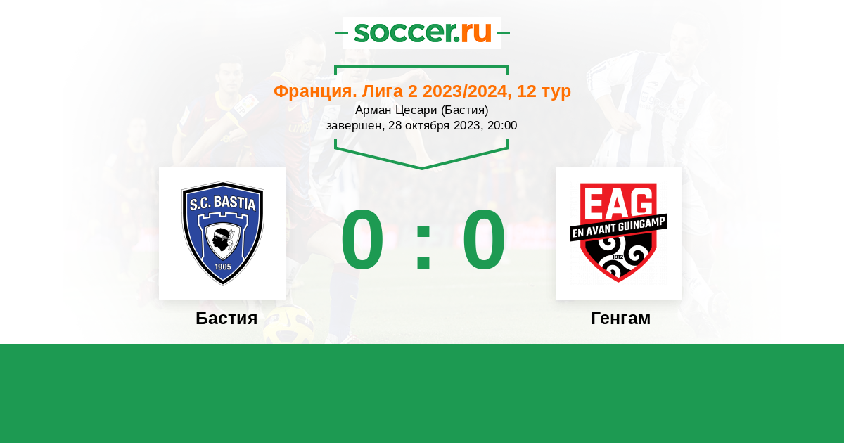 Протокол матча Бастия против Генгам