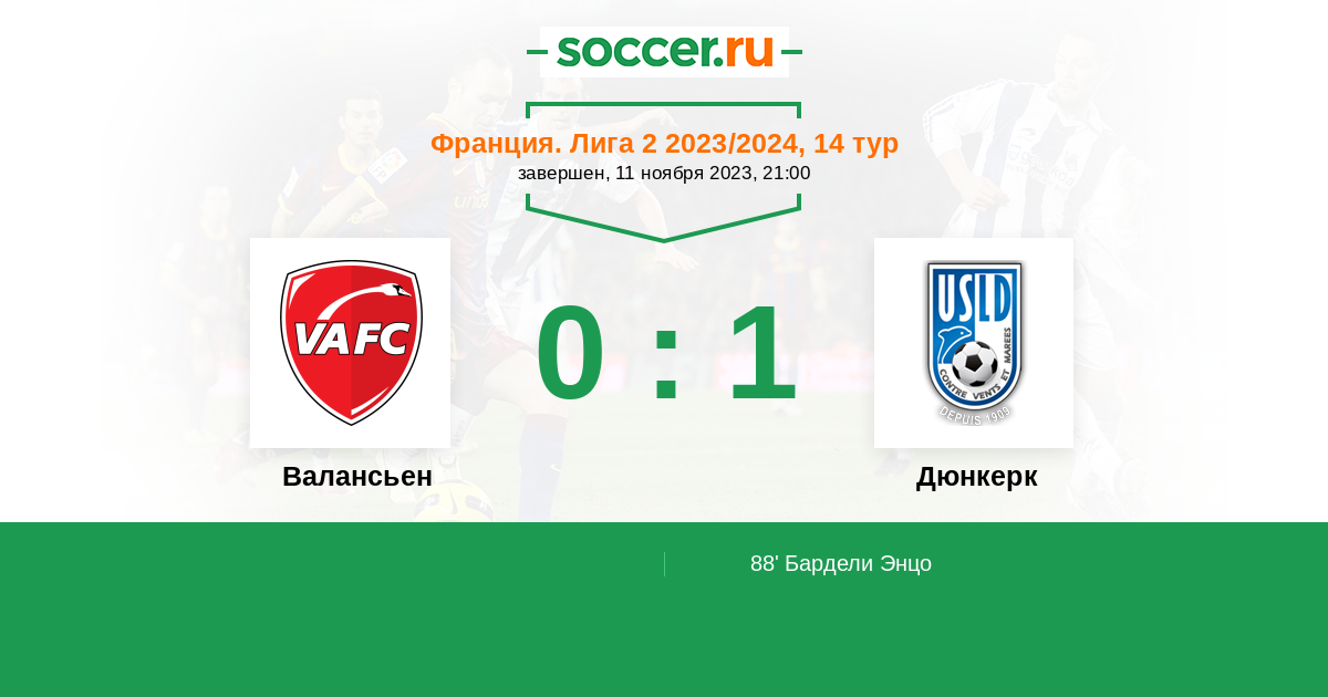 Протокол матча Валансьен против Дюнкерк