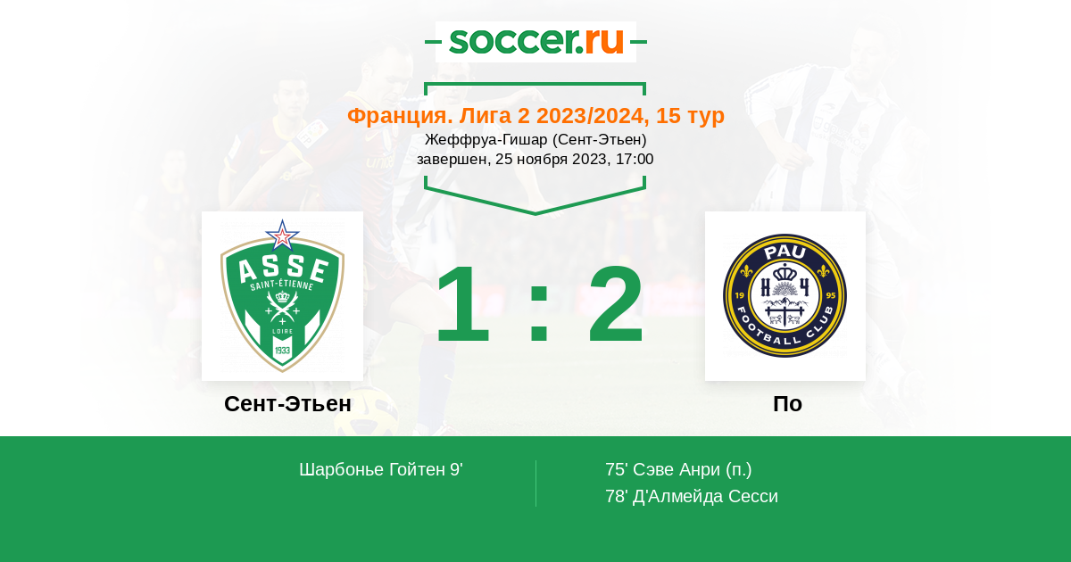 Протокол матча Сент-Этьен против По
