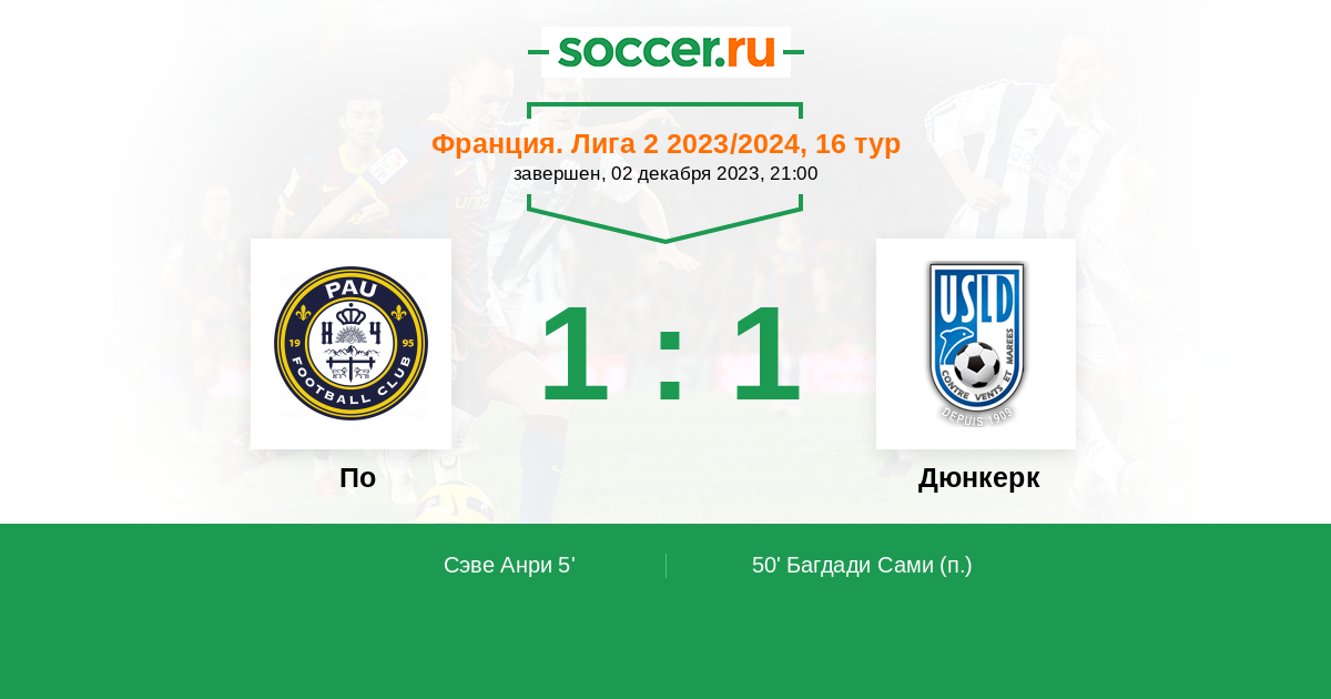 Протокол матча По против Дюнкерк