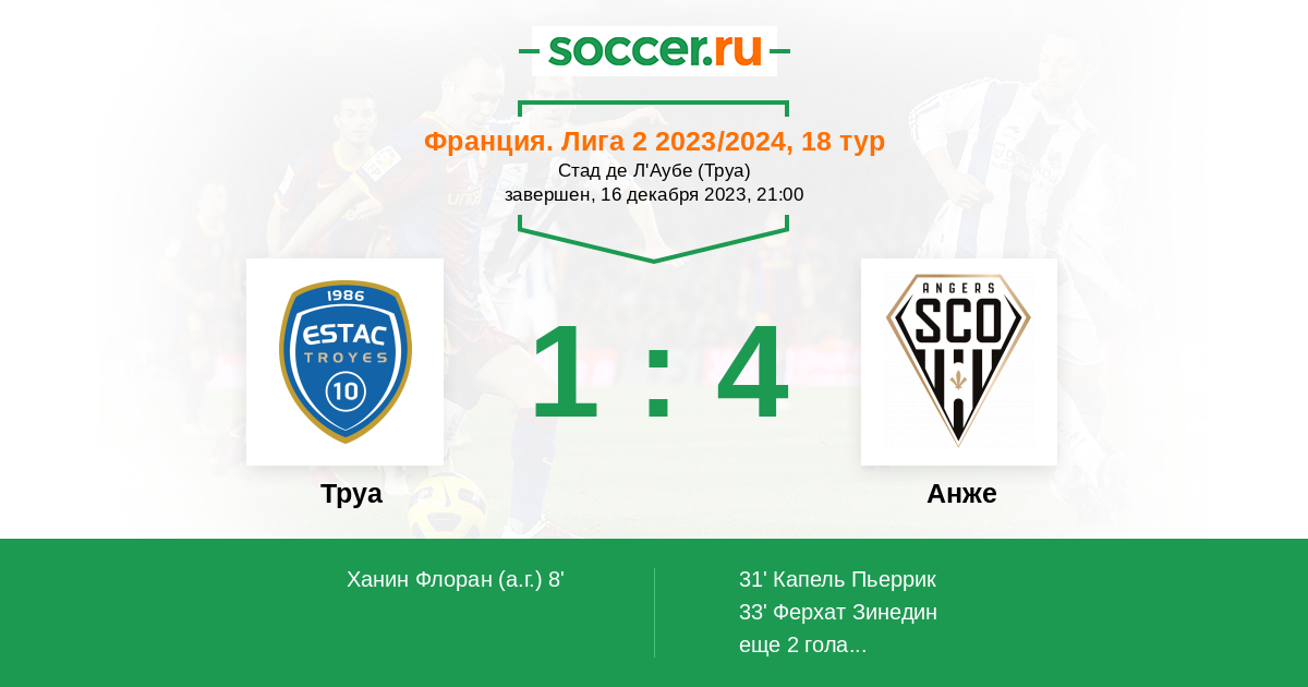 Протокол матча Труа против Анже