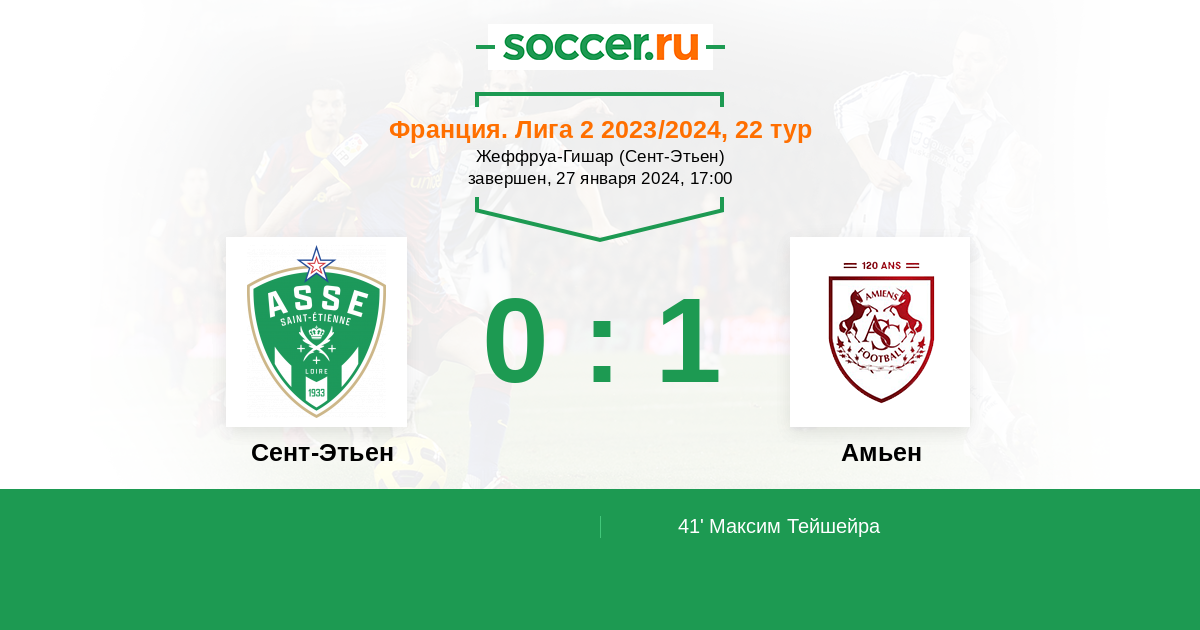 Протокол матча Сент-Этьен против Амьен