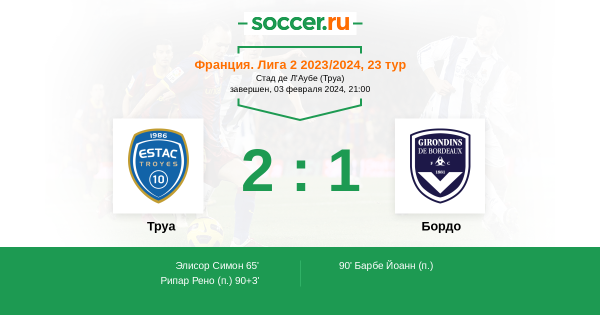 Протокол матча Труа против Бордо
