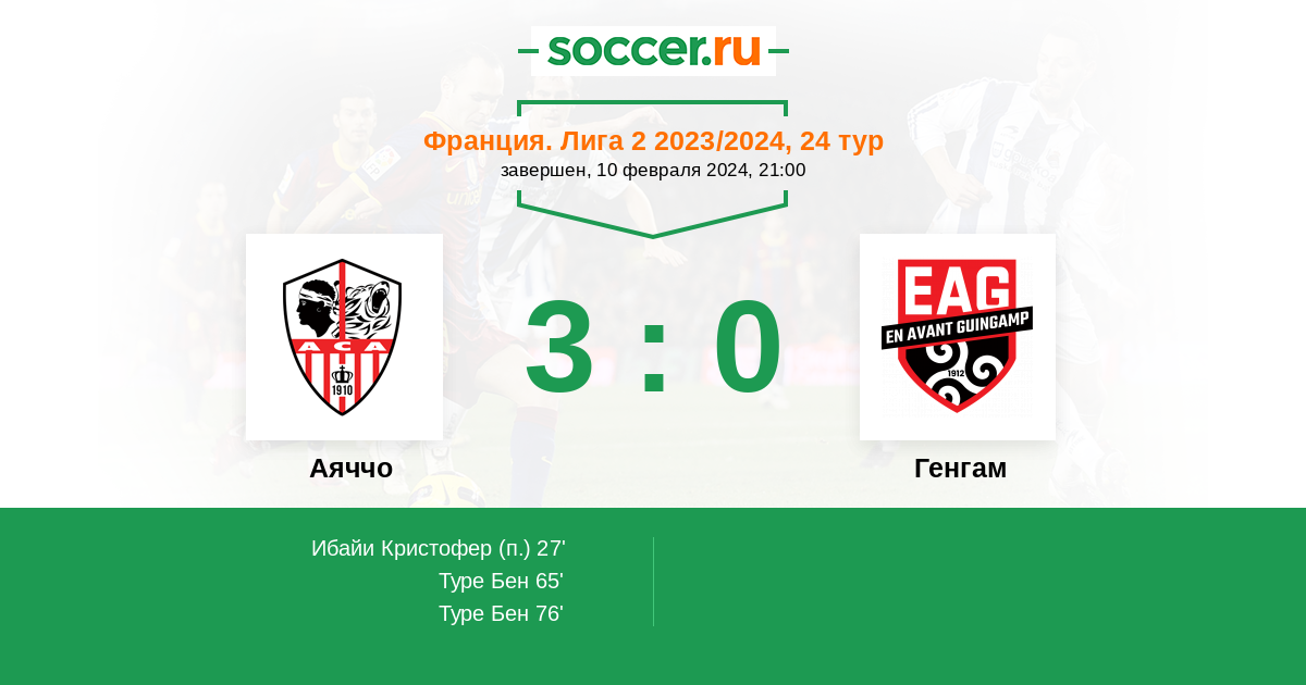 Протокол матча Аяччо против Генгам