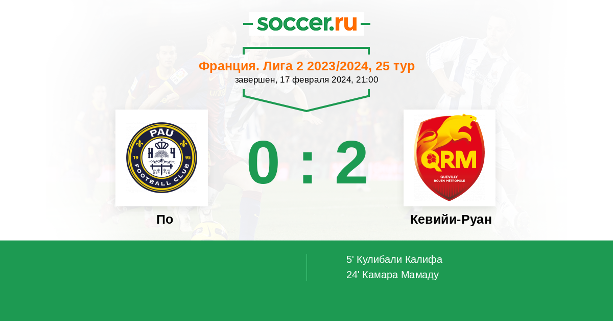 Протокол матча По против Кевийи-Руан