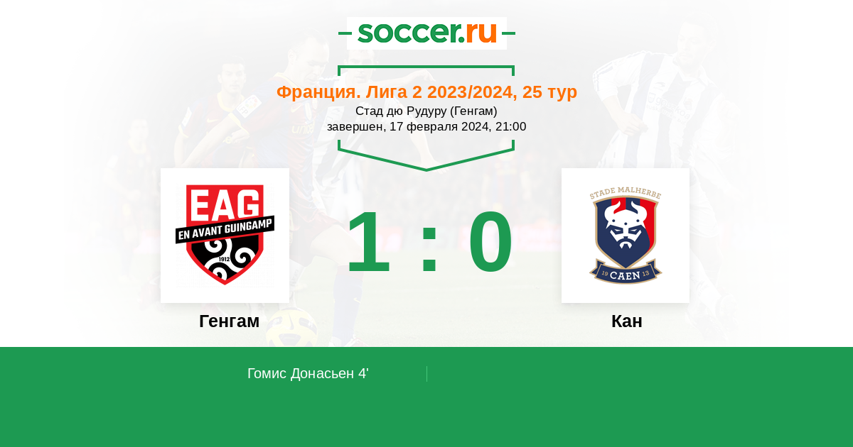 Протокол матча Генгам против Кан