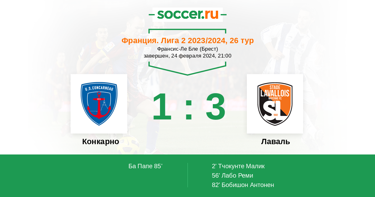 Протокол матча Конкарно против Лаваль