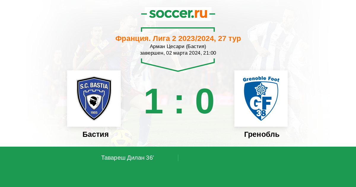 Протокол матча Бастия против Гренобль