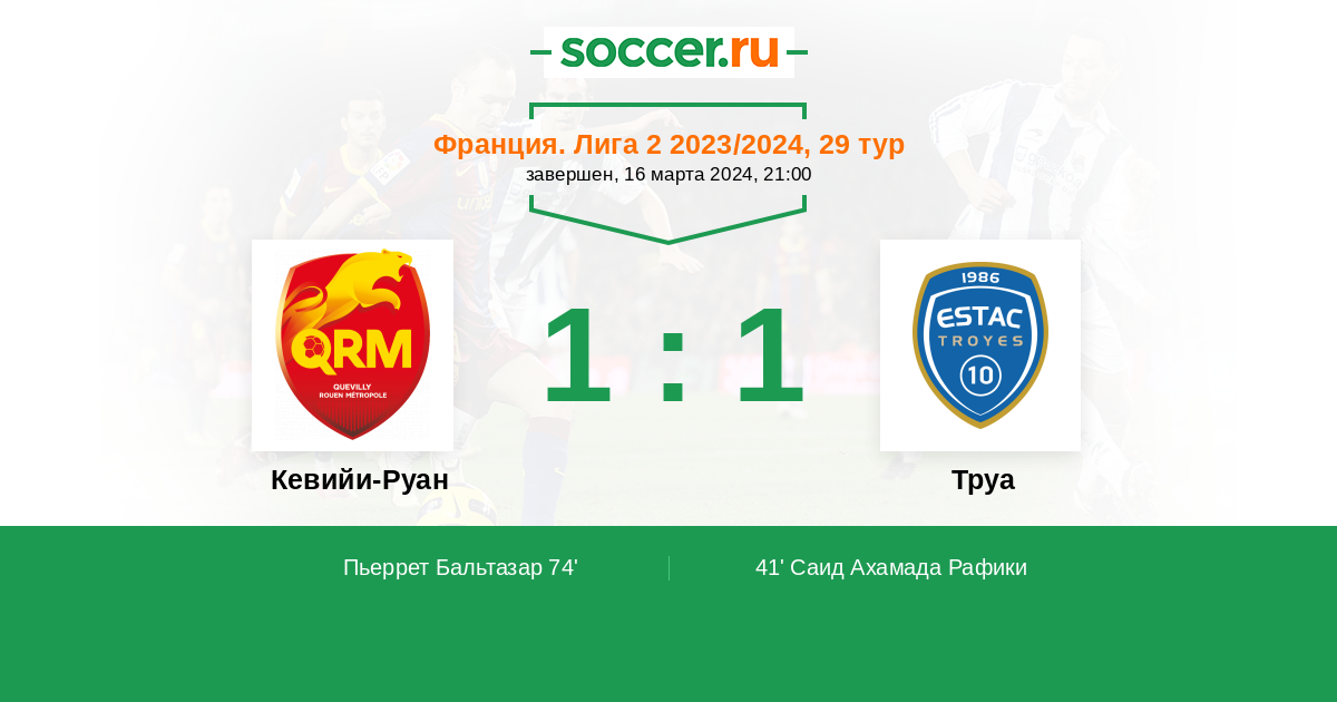 74' (1:1) Пьеррет Бальтазар (4) (Сиссоко Нельсон (58))