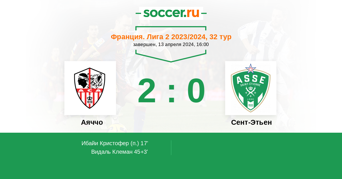Протокол матча Аяччо против Сент-Этьен