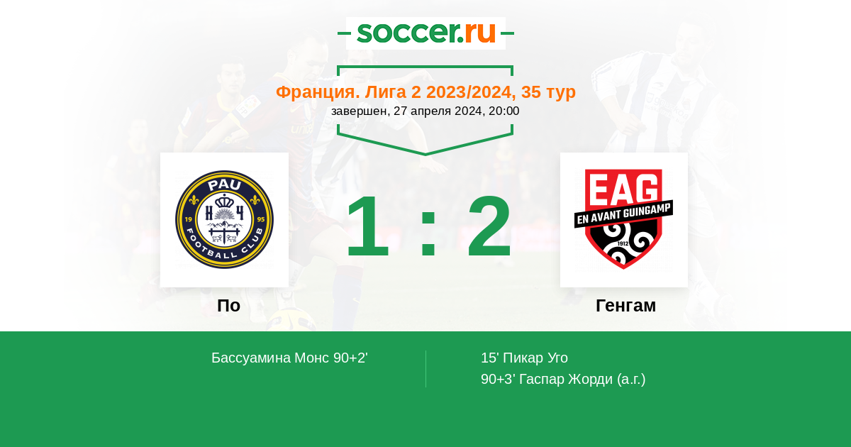 15' (0:1) Пикар Уго (20) (Гийом Баптист (21))
