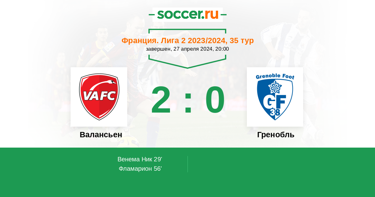 Протокол матча Валансьен против Гренобль
