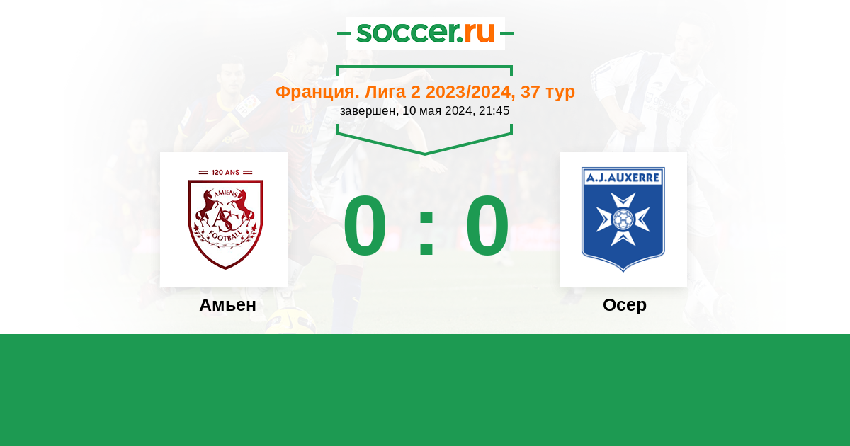 Протокол матча Амьен против Осер