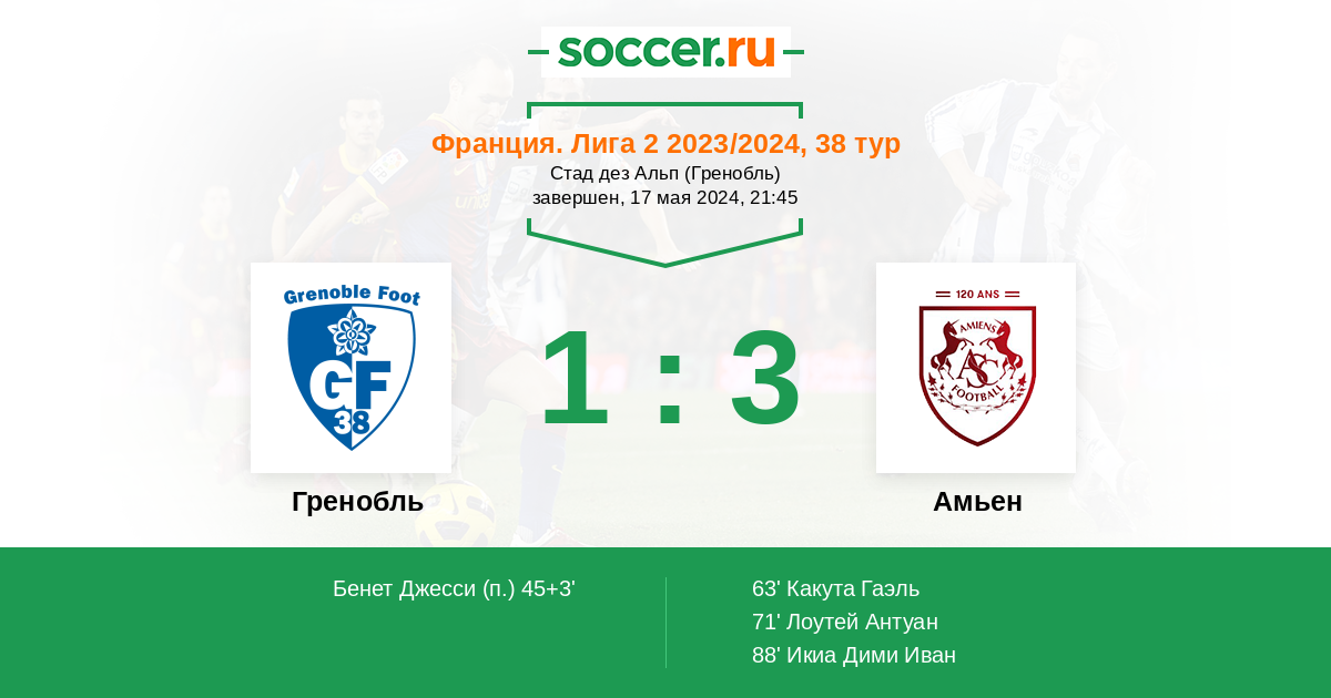 63' (1:1) Какута Гаэль (10) (Шоер Мунир (17))