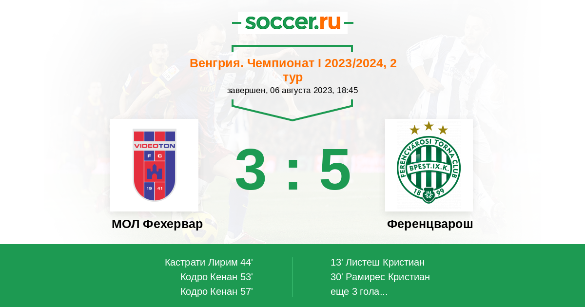 Протокол матча МОЛ Фехервар против Ференцварош
