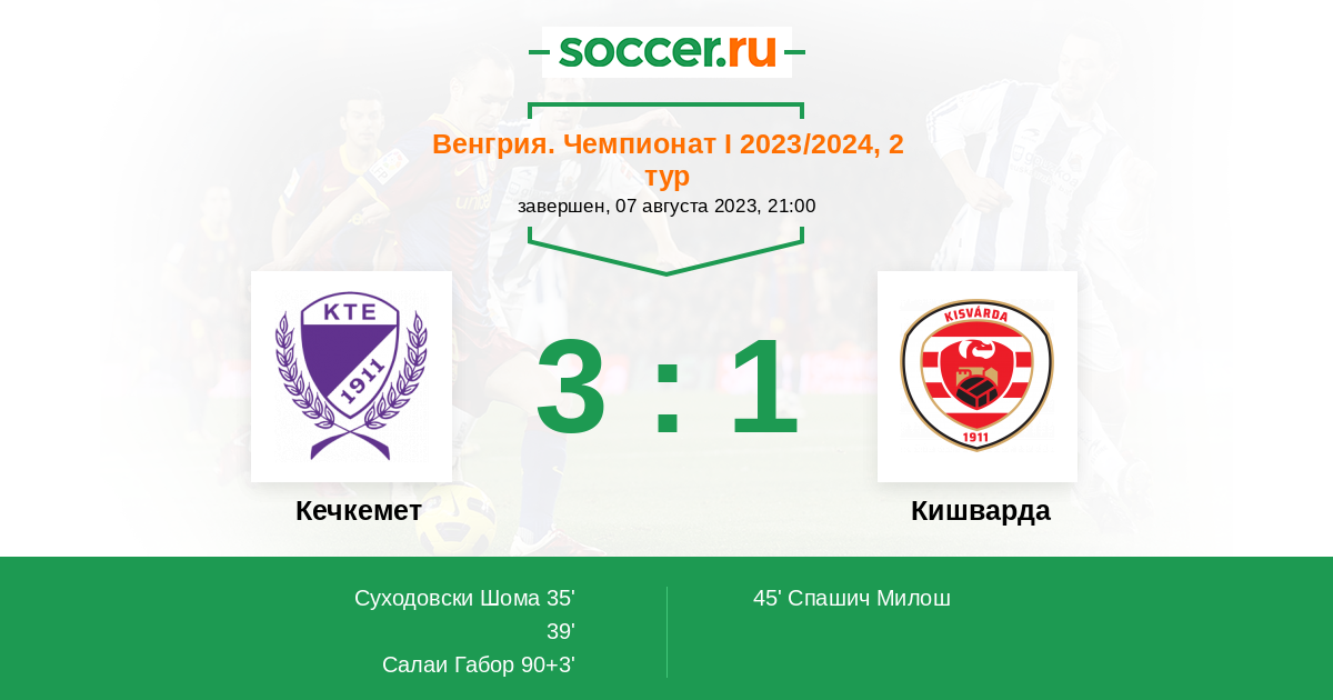 Протокол матча Кечкемет против Кишварда
