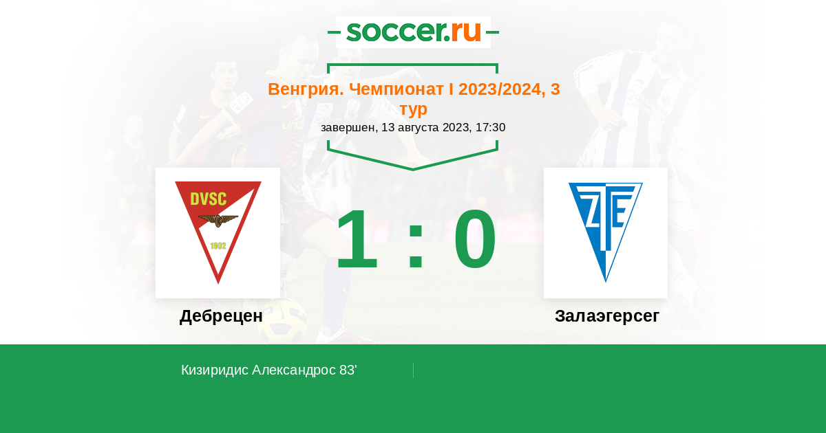 Протокол матча Дебрецен против Залаэгерсег