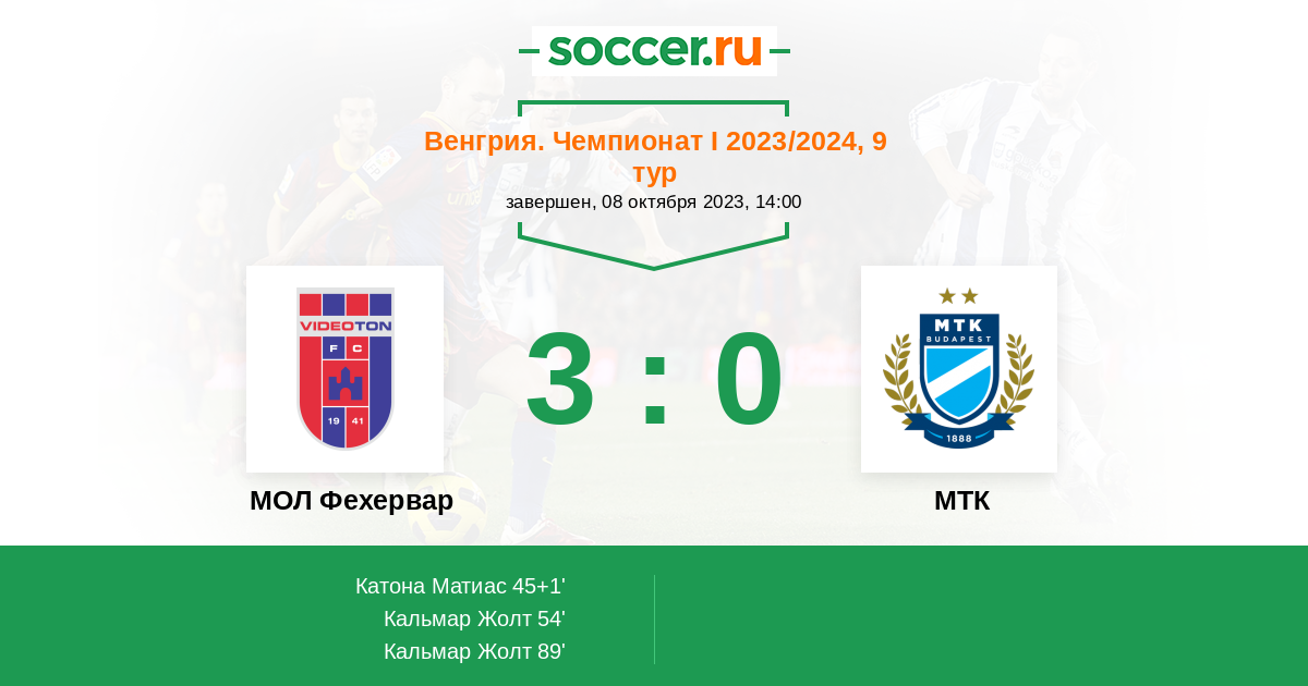 45+1' (1:0) Катона Матиас (77) (Кальмар Жолт (13))