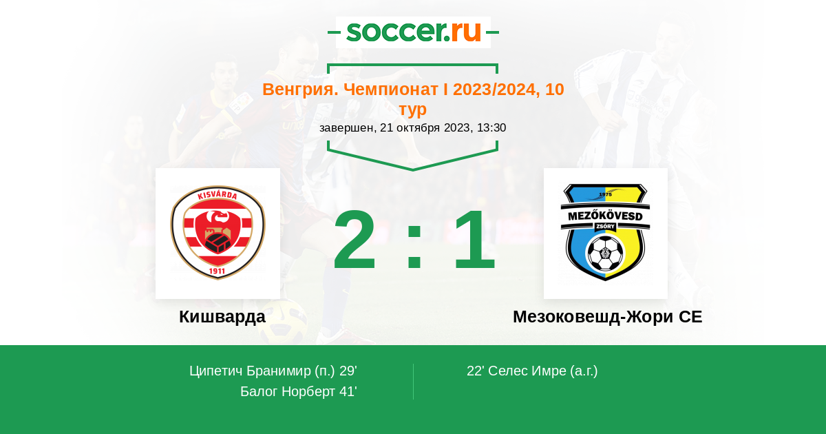 Протокол матча Кишварда против Мезоковешд-Жори СЕ