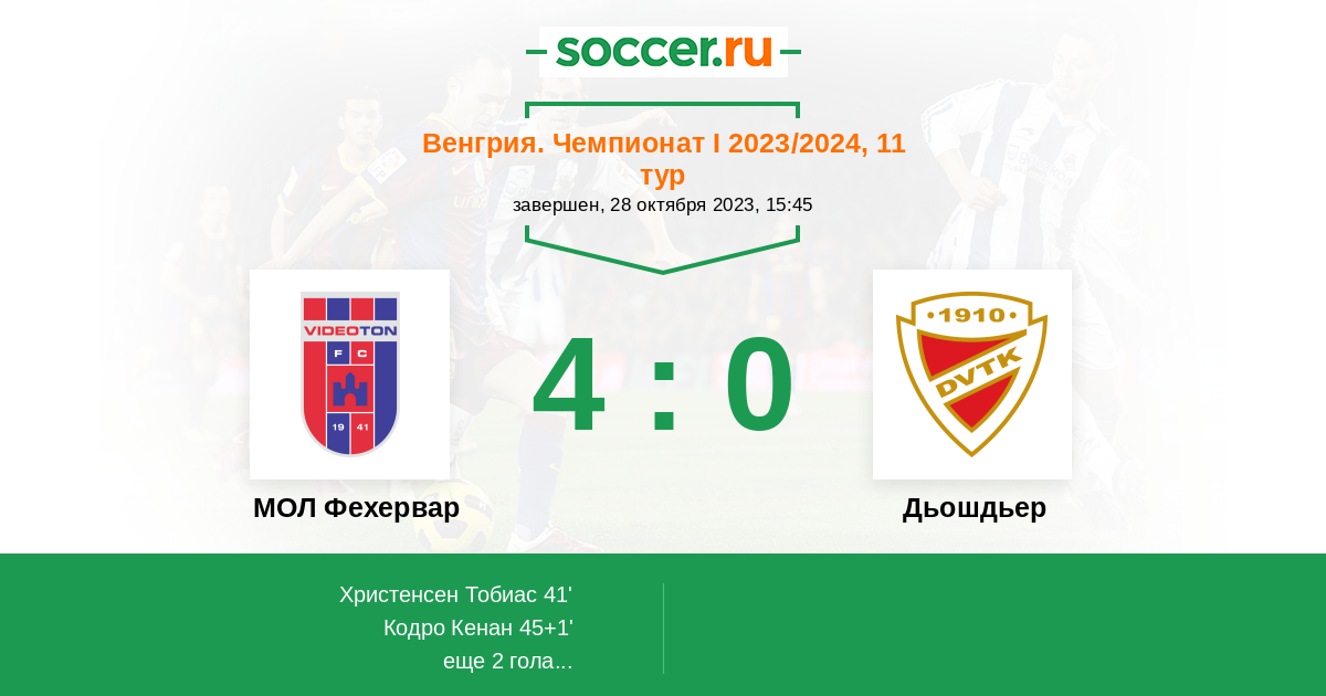 Протокол матча МОЛ Фехервар против Дьошдьер