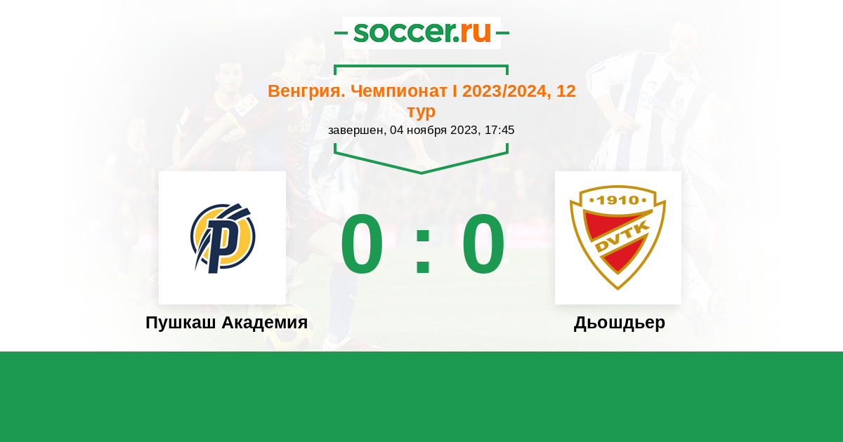 Протокол матча Пушкаш Академия против Дьошдьер