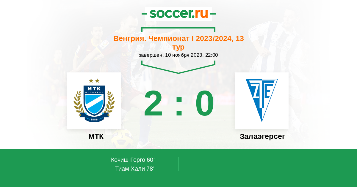Протокол матча МТК против Залаэгерсег