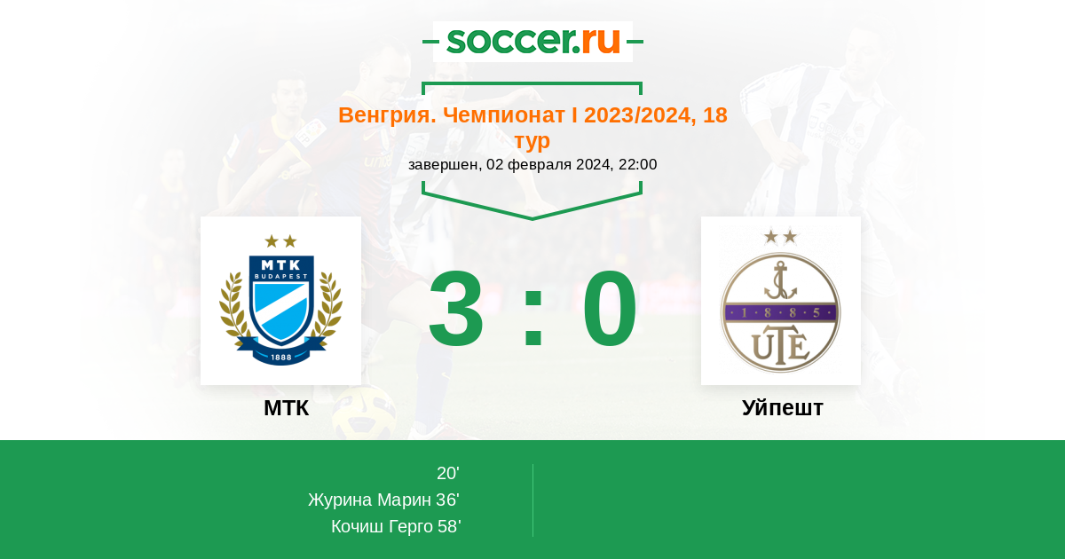 Протокол матча МТК против Уйпешт