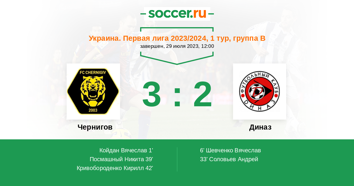 Протокол матча Чернигов против Диназ