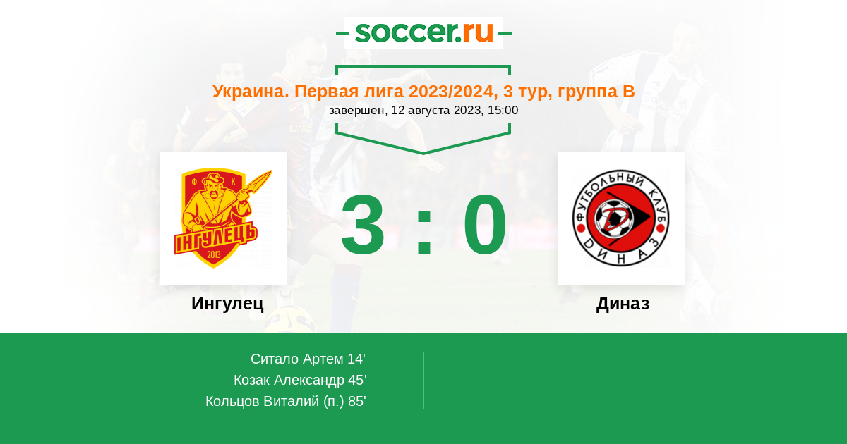 Протокол матча Ингулец против Диназ