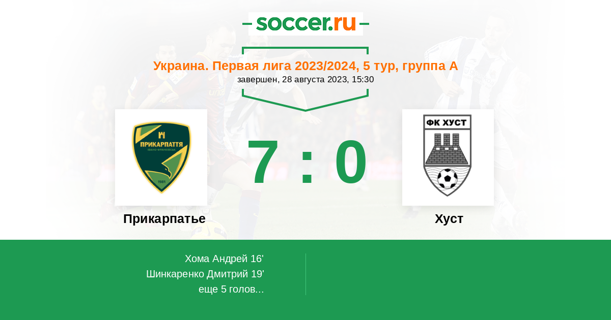 Протокол матча Прикарпатье против Хуст