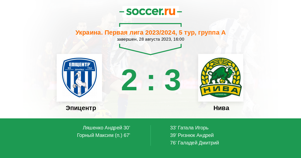 Протокол матча Эпицентр против Нива
