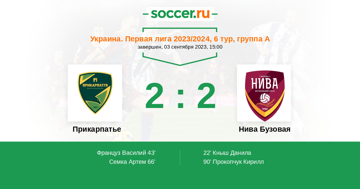 Протокол матча Прикарпатье против Нива Бузовая