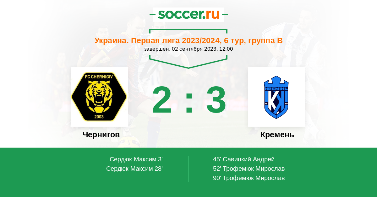 Протокол матча Чернигов против Кремень