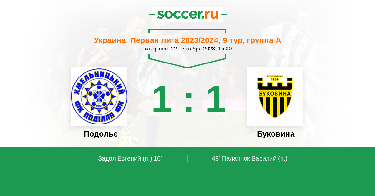 Протокол матча Подолье против Буковина