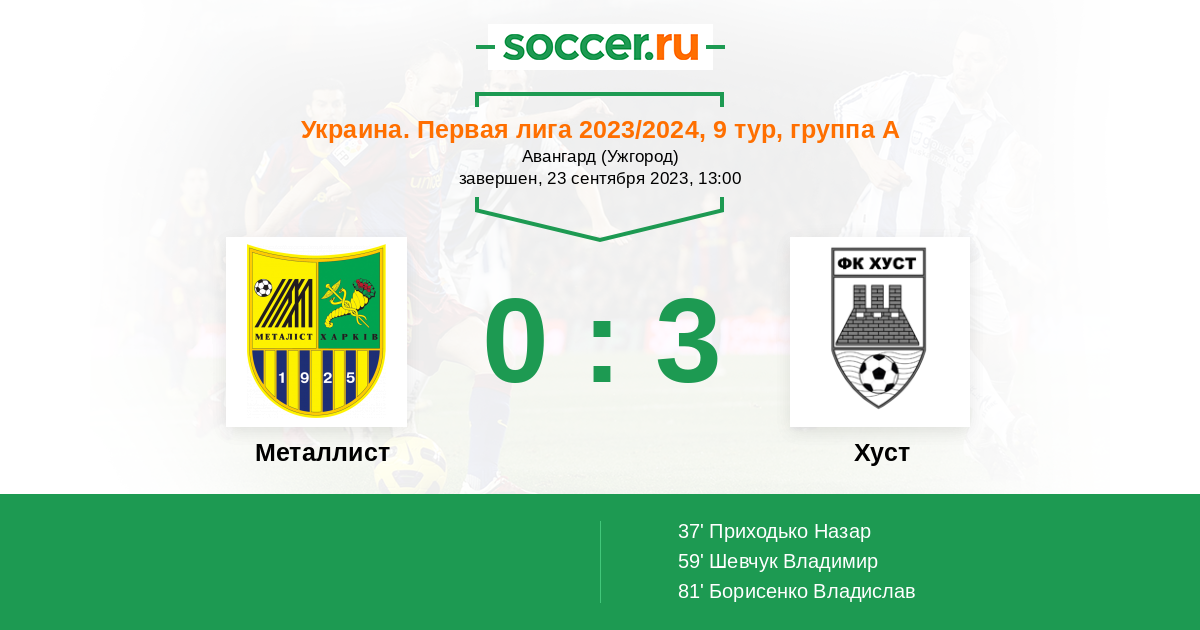 Протокол матча Металлист против Хуст