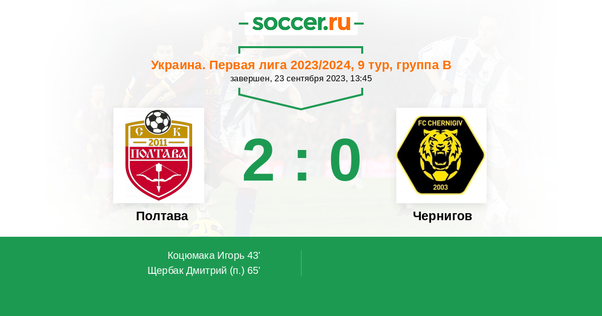 Протокол матча Полтава против Чернигов