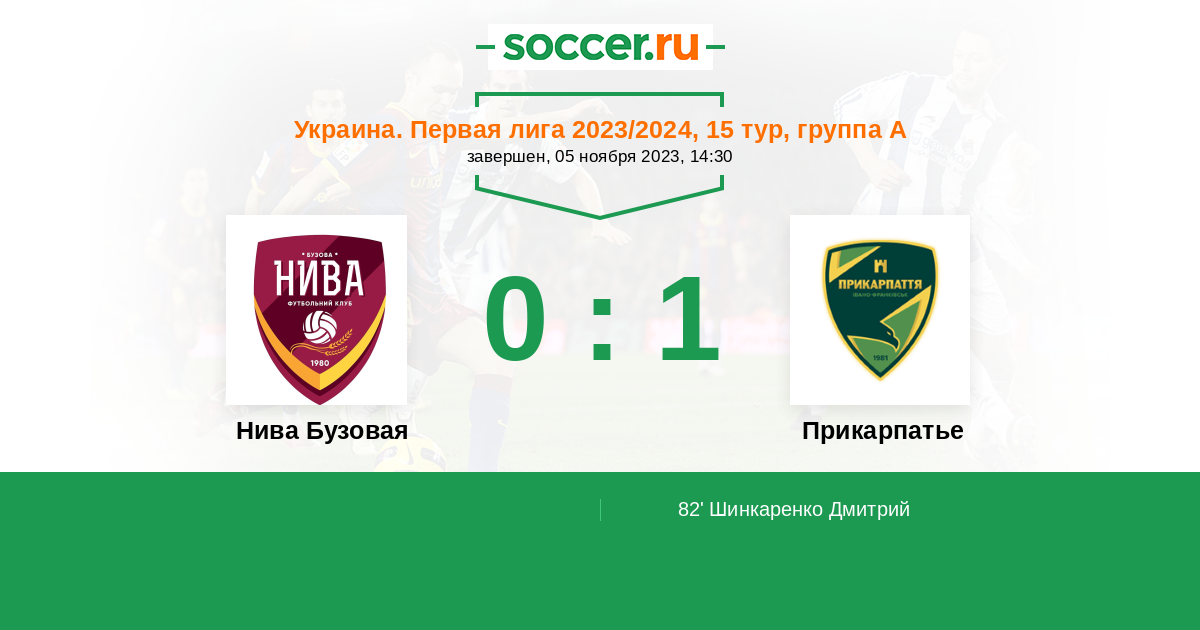 Протокол матча Нива Бузовая против Прикарпатье